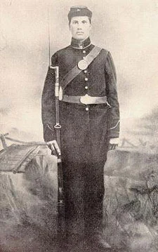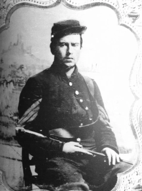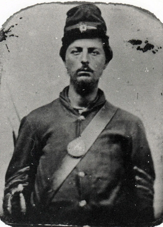 Pvt. Joseph Chadwick, Co. I, 82nd Ohio. Enlisted Nov. 5, 1861, Mustered out July 24, 1865. Wounded at New Hope Church, May 25, 1864. Wounded at Kolb's Farm, June 22, 1864. (Richard and Alma Fink Collection)